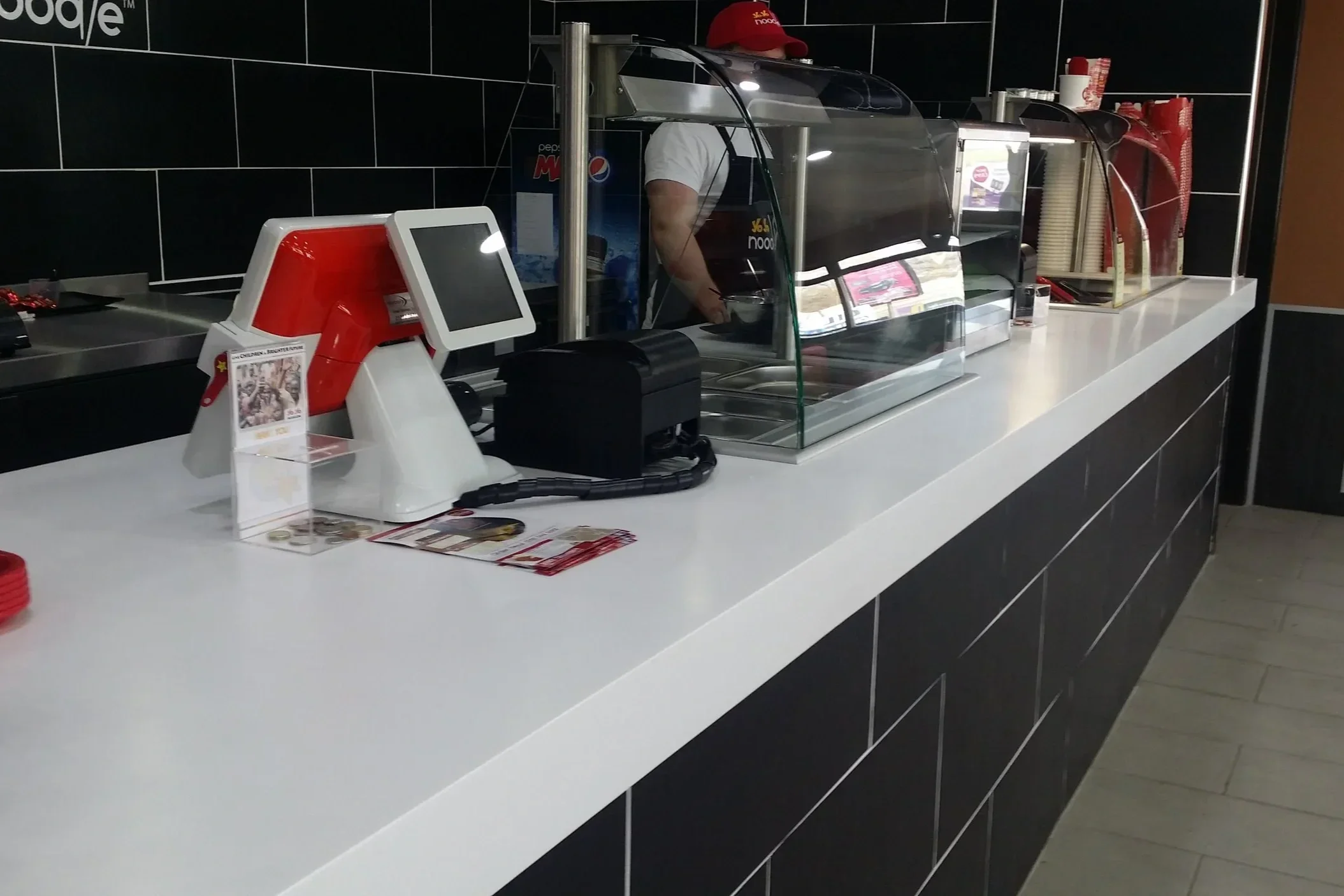 Restaurants & Cafés – Hygienic tabletops, serving areas, and feature walls available in a variety of colours to match brand identity.