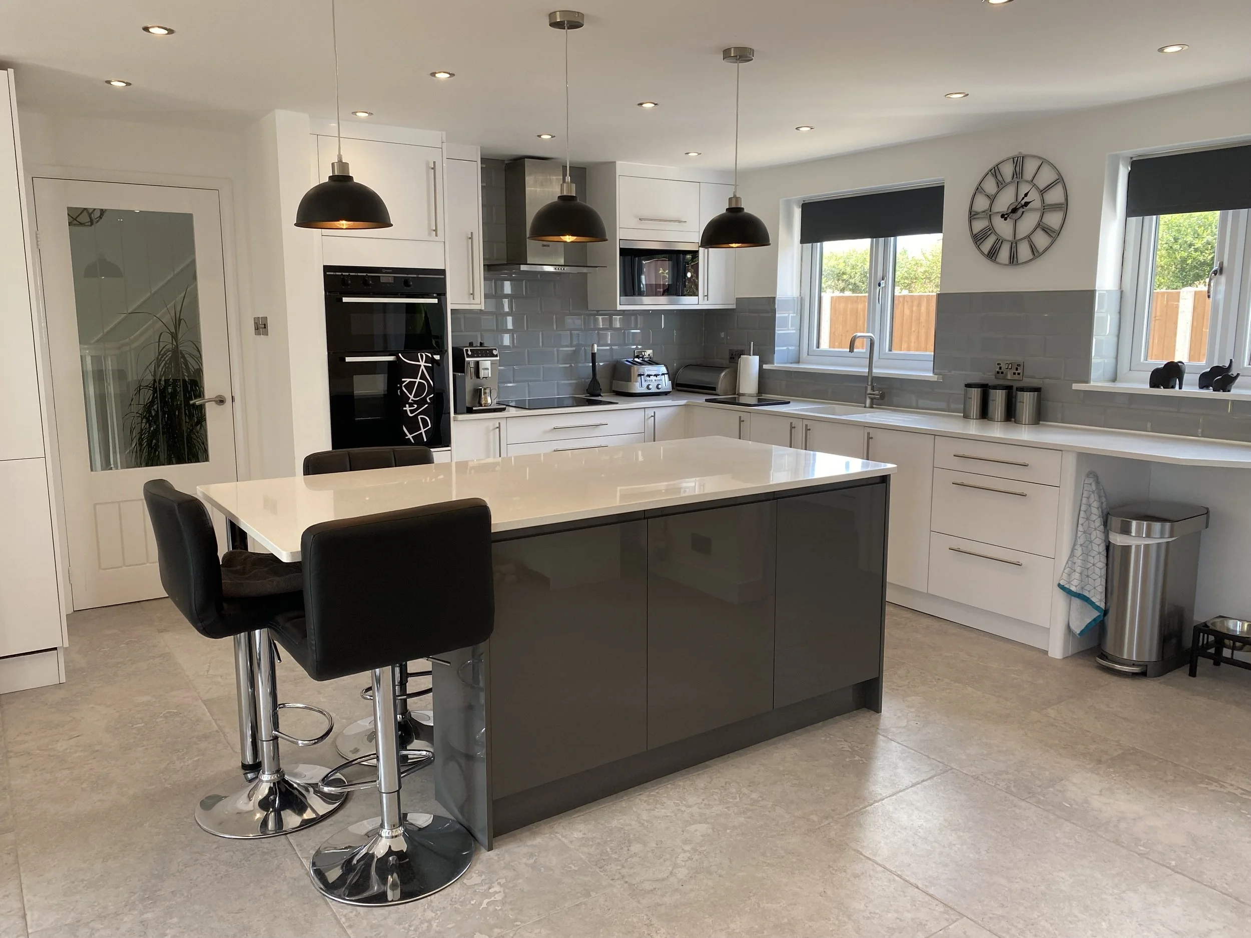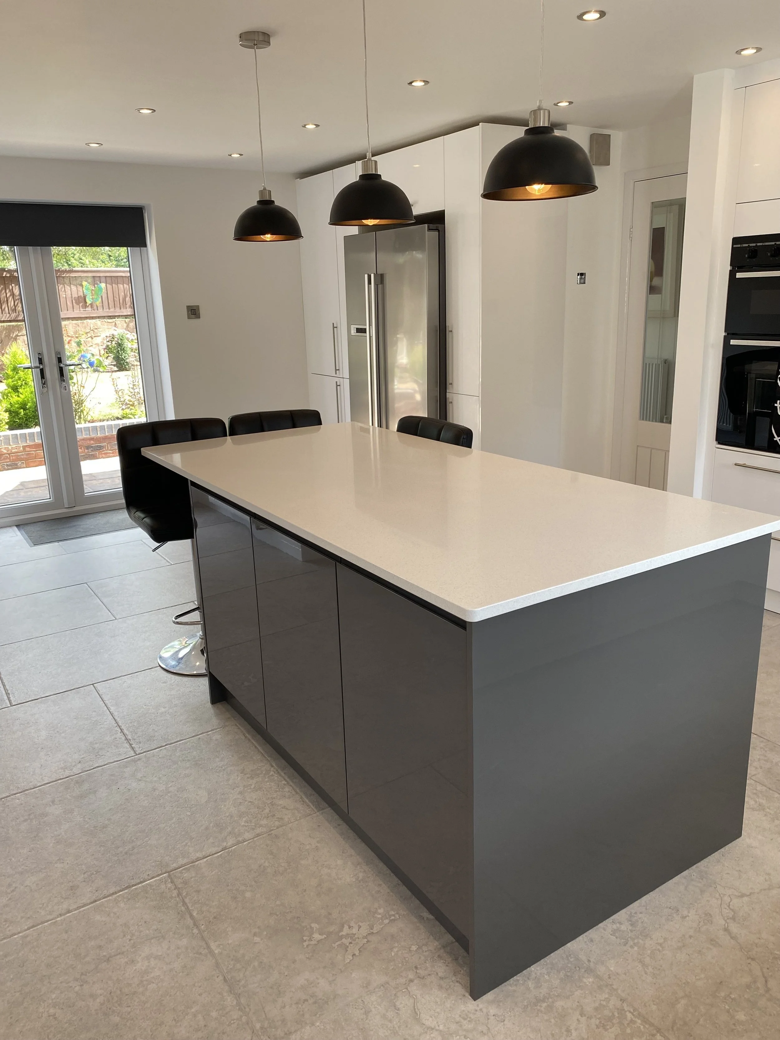 The fabricators removed the old laminate worktops and created a beautiful matching worktop in Iris in the kitchen and utility room- both with Syncro sinks.