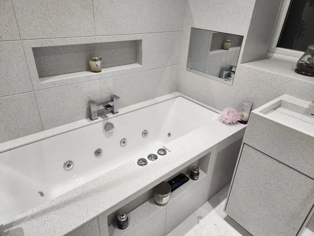 Bathrooms & Vanities – Hygienic and water-resistant solutions for vanities, bath surrounds, and shower walls.