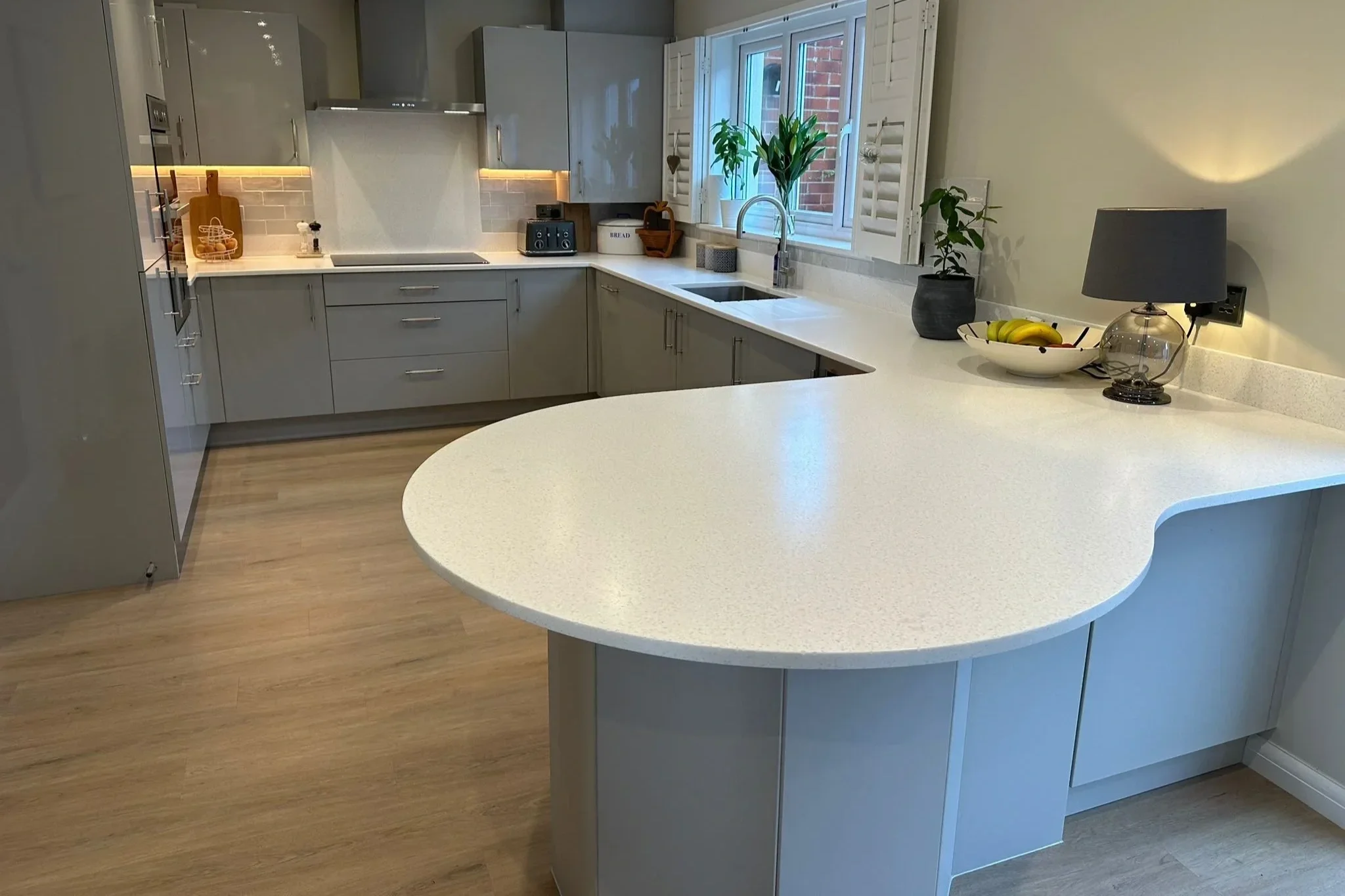 A worktop doesn’t sit in isolation. Its colour needs to work with cabinetry, flooring, and wall finishes as part of a complete scheme.